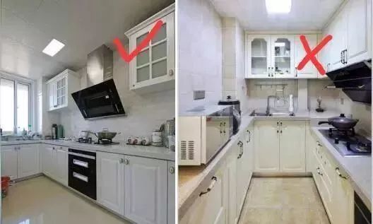 厨房东西多,吊柜门板不要装透明玻璃,一旦东西摆放不整齐看上去会显得非常乱不好看,如果要装玻璃建议装磨砂玻璃。