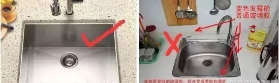 厨房水槽不要装错了,如果你家装的是台上盆,那么时间一久水槽周边的玻璃胶容易发霉变黑,超级难看,最好是装台下盆,不用打玻璃胶,台面有水渍也只要用抹布往水槽一赶全部都会流到水槽里去。