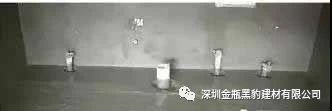 在管根、管道、阴阳角、施工缝等易发生漏水的部位应增强处理。在管根、管道周围凿开采用瞬间堵漏剂进行封堵,然后再用毛刷涂刷一至两遍防水涂料;阴阳角、施工缝部位采用聚酯布增强处理后用刮板刮涂一遍防水涂料,聚酯布宽度为300mm。