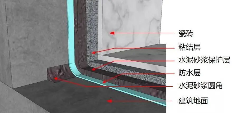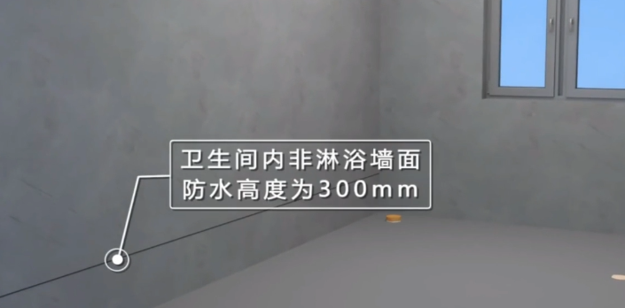 对于墙面会经常接触水的卫生间,防水高度应加高至1800mm;