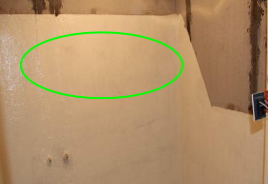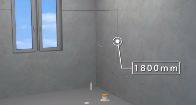 在设定好的防水高度位置进行弹线,卫生间内非淋浴墙面防水高度为300mm;