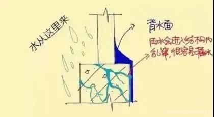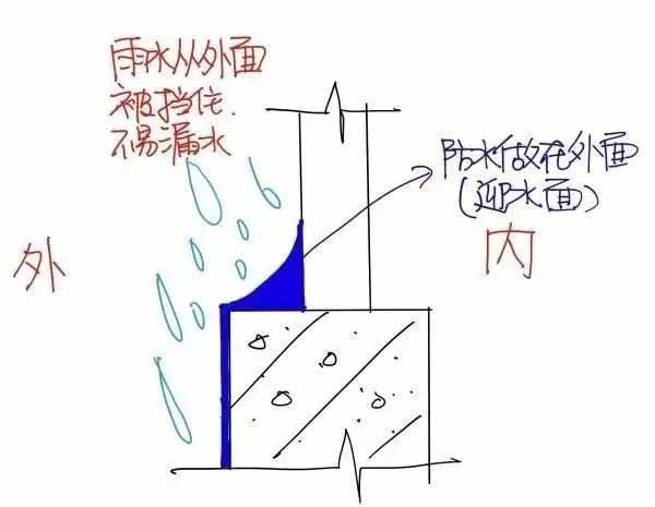 所以一般防水是从迎水面施工,即水从哪里来,就从哪里下手做防水。背水面防水一般是在万般无奈的情况下才使用的办法,比如楼上漏水却不能重做防水,那我们就只能在自己的天花板上做背水面防水了,或者是在房屋渗漏的情况下,采取的堵漏防水方法。
