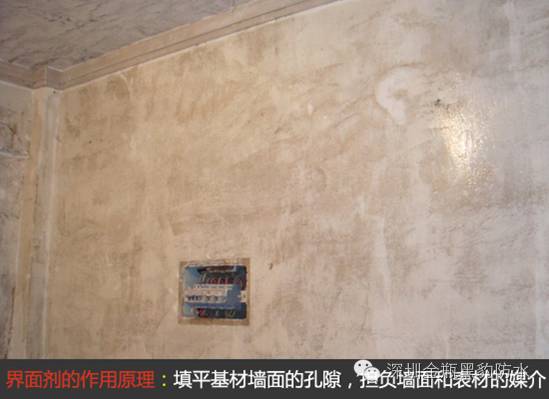 界面剂能填平基材墙面的孔隙,减少墙体的吸收性,保证覆面砂浆材料在更佳条件下粘结胶凝。同时界面剂担负着墙面和表面材料粘合的媒介,保证整体结合成一个永久粘合的整体。