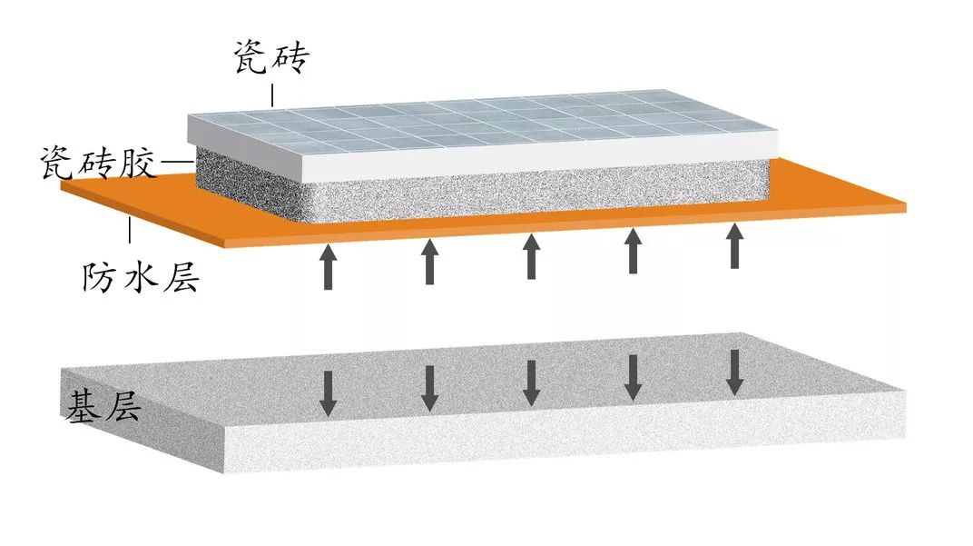 瓷砖胶与防水层脱开