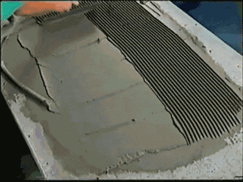 瓷砖胶在上墙的时候用齿型刮刀凹造型是必不可少的,厚度约3mm左右即可梳刮出漂亮的条纹状,能在揉、挤、压实、定位等快速粘贴功法中,挤出多余空气,最大面积与瓷砖紧紧结合。但有时碍于基层的问题,瓷砖胶被当做水泥一样使用,厚厚的涂一层,找平,铺贴一举两得,可是这两个步骤真不能省,瓷砖胶千万不要抹厚后,否则后果只能自负。